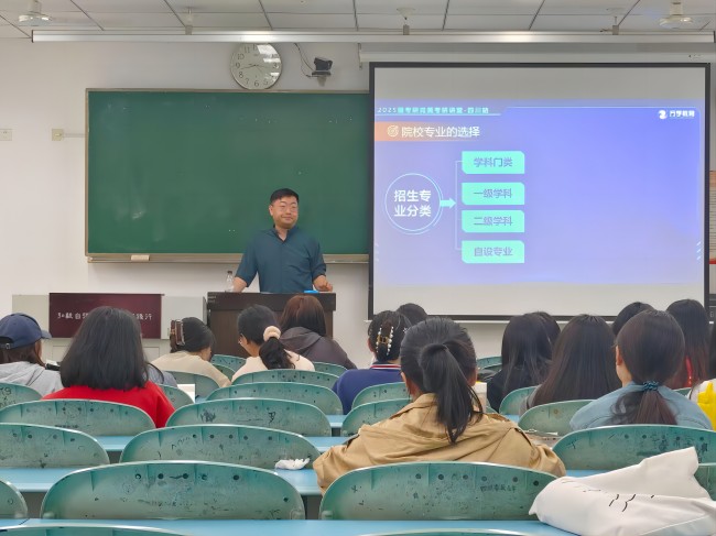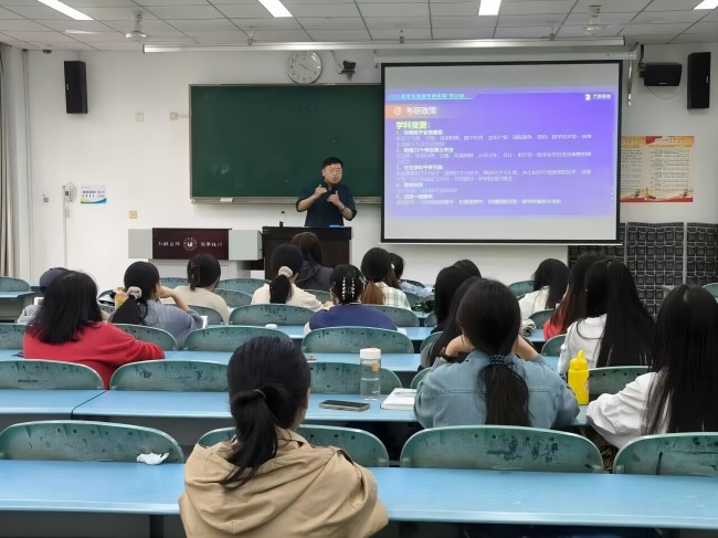 本网讯(文/杨叶子、叶丹 图/张怡娟)为促进2025届学生全面深入了解考研相关讯息,帮助考研学生明确考研目标,顺利备战考研。4月18日,生命科学学院在行知楼211室开展了考研就业培训会,由海文考研讲师朱子骁主讲。