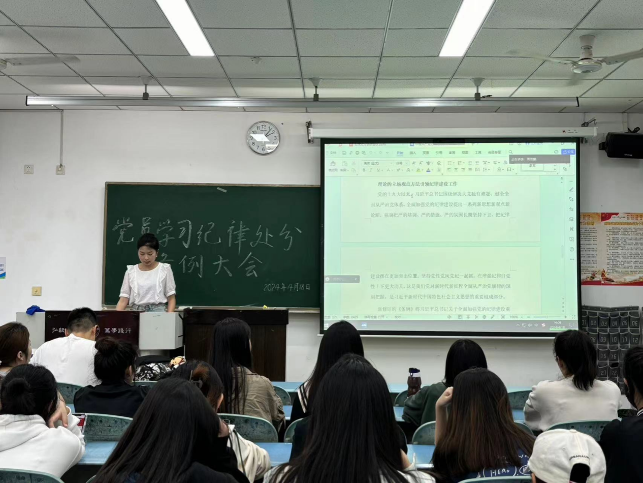学院党委会、党支部党员大会首先传达学习习近平总书记关于党纪学习教育的重要讲话和重要指示精神及党中央、省委、学校党委有关部署安排。随后组织相关党员干部、师生党员集体学习《中国共产党纪律处分条例》。